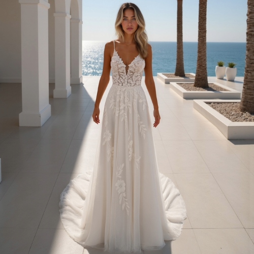 La robe bohème mise sur la simplicité et la grâce naturelle. Elle privilégie les tissus fluides, les dentelles délicates et les coupes aériennes. Contrairement aux robes très structurées, la robe bohème se veut libre, souple et sans contrainte. Elle épouse le corps sans le figer, pour un rendu à la fois élégant et naturel.
