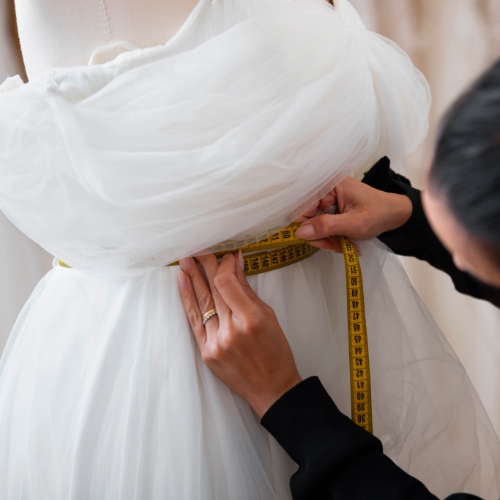 - L’expertise : Un travail sur la structure interne de la robe, avec des bustiers renforcés et des jeux de laçages permettant d’ajuster parfaitement la pièce à votre corps.